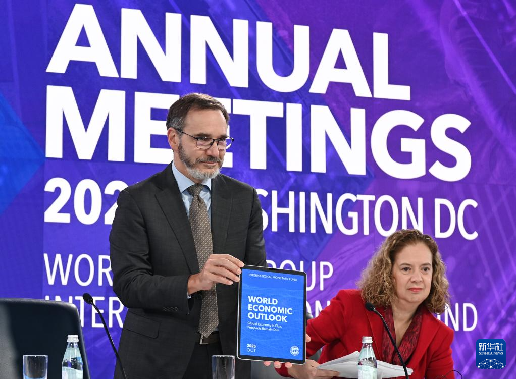 新华社纽约10月14日电(记者徐静熊茂玲)国际货币基金组织(IMF)于TH-14发布最新《世界经济展望报告》,小幅上调了今年世界经济增长预期。国际货币基金组织指出,关税的影响进一步损害了全球经济增长前景,世界经济仍然有点脆弱。 10月14日,美国华盛顿,国际货币基金组织首席经济学家皮埃尔-奥维尔·古兰查(左)在世界经济展望报告发布会上展示报告。新华社记者 李锐 摄 报告预测,到2025年世界经济将增长3.2%,比今年7月的预测高出0.2个百分点; 2026年增长3.1%,与7月份的预测相同。 IMF强调,上调对于因美国关税政策而提前进口的因素以及大多数各国为维护全球贸易体系开放和稳定所做的努力。目前,关税的影响进一步损害了全球经济增长前景。贸易的高度不确定性、保护主义措施的增加、地缘政治的持续加剧以及财政疲软的加剧都表明世界经济面临风险。报告将今年新兴市场经济增速和经济发展预测较7月预测上调0.1个百分点至4.2%,同时还将发达经济体今年经济增速上调0.1个百分点至1.6%。国际货币基金组织表示,美国经济正显示出大幅放缓的迹象。美国7月以来就业数据不及预期,多项新增就业岗位大幅下降,8月失业率升至近四年来新高。国际货币基金组织表示,各经济体应努力确保债务维持,消除不确定性加强贸易政策合作,减少贸易和投资壁垒。 10月14日,美国华盛顿,国际货币基金组织首席经济学家皮埃尔·奥利维尔·古林查在世界经济展望报告发布会上发表讲话。新华社记者 李锐 摄 10月14日,美国华盛顿,国际货币基金组织首席经济学家皮埃尔-奥利维尔·古林查(中)在《世界经济展望报告》新闻发布会上发言。新华社记者 李锐 摄 10月14日,美国华盛顿,国际货币基金组织首席经济学家皮埃尔-奥利维尔·古林查(左二)在世界经济展望报告发布会上发言。图为新华社记者 李锐 新华社记者 在美国华盛顿,国际货币基金组织首席经济学家皮埃尔-奥利维尔·古林查(左二)在世界经济论坛上发言展望报告新闻发布会。